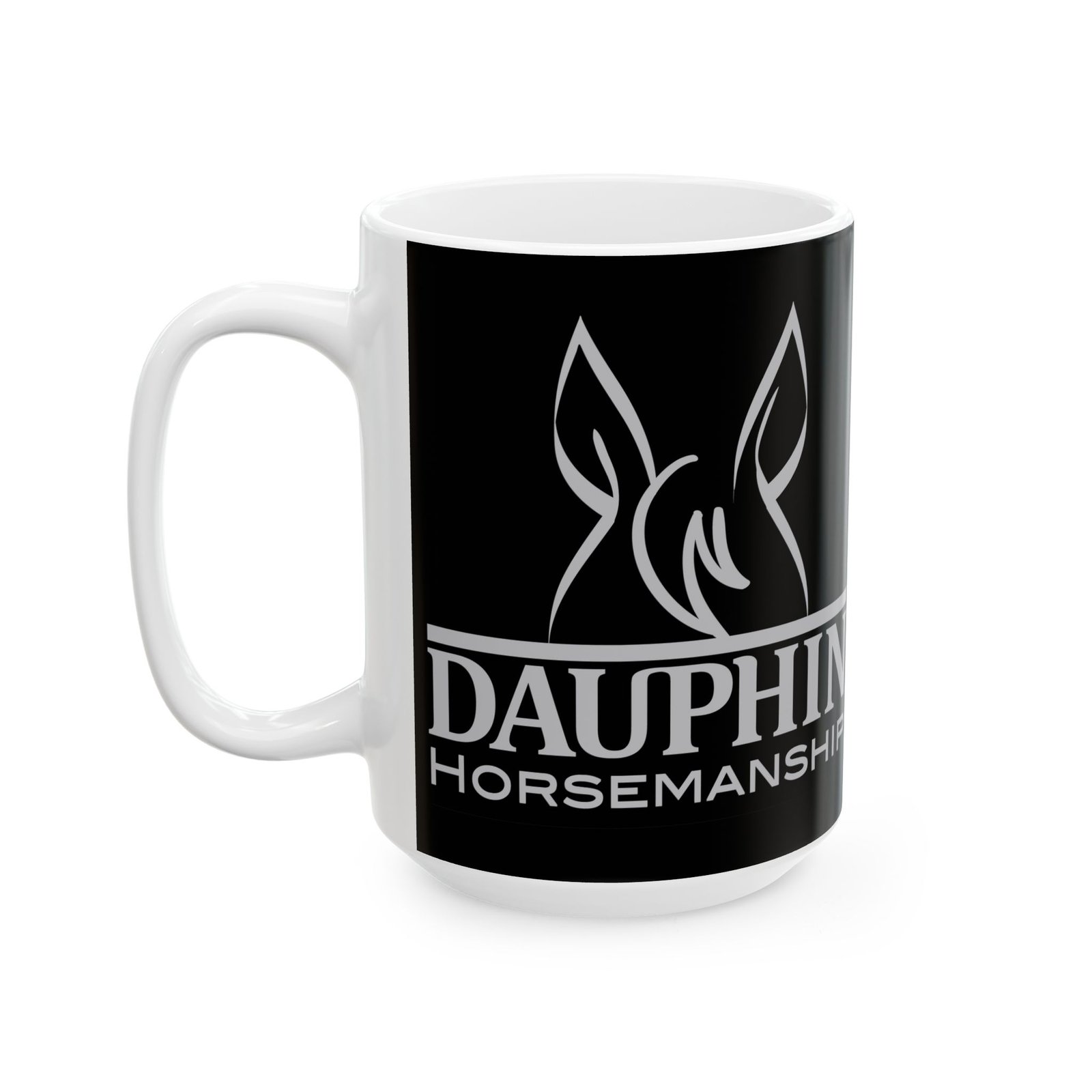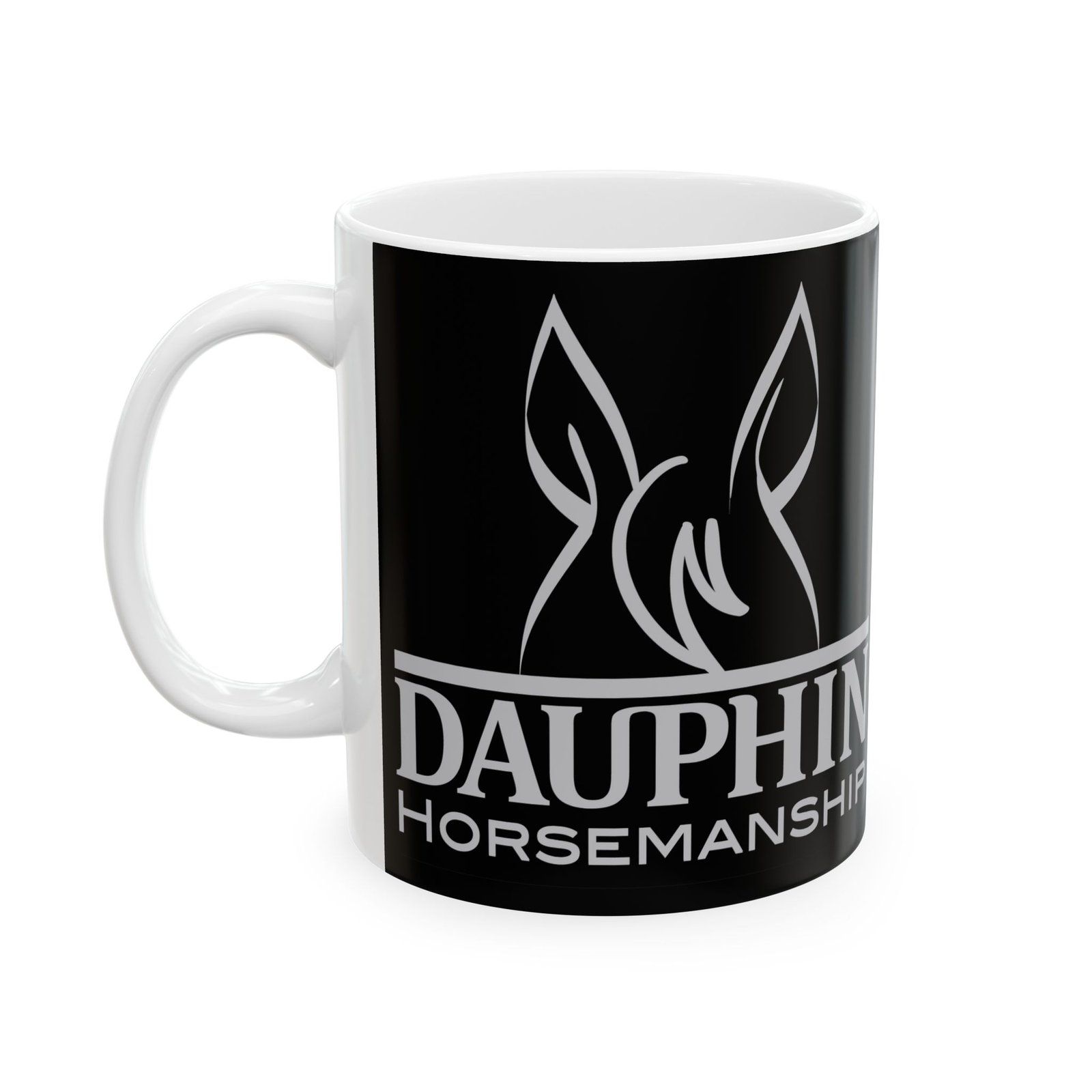 Bring a confident, saddle-room energy to your morning ritual. This glossy ceramic mug carries the Dauphin Horsemanship logo like a badge—bold black-and-white contrast that reads from across the kitchen. It holds hot coffee, tea, or soup and keeps warmth until you set it down. The comfortable C-handle fits your grip, and the shiny finish makes the paint-horse-inspired design pop. Use it on chilly mornings after feeding, at the barn between lessons, or at your favorite desk when you need a steady, familiar ritual to center the day.